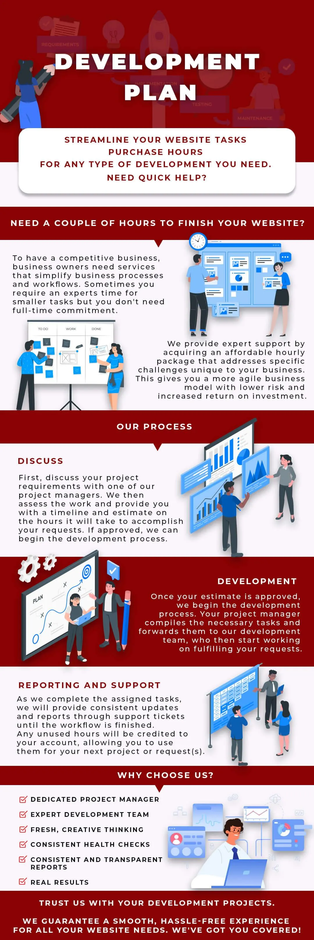 Get 40 hours of development support for only $28/hr. Perfect for agencies that need small jobs or agencies working with clients that require development tweaks to an existing website or landing page.